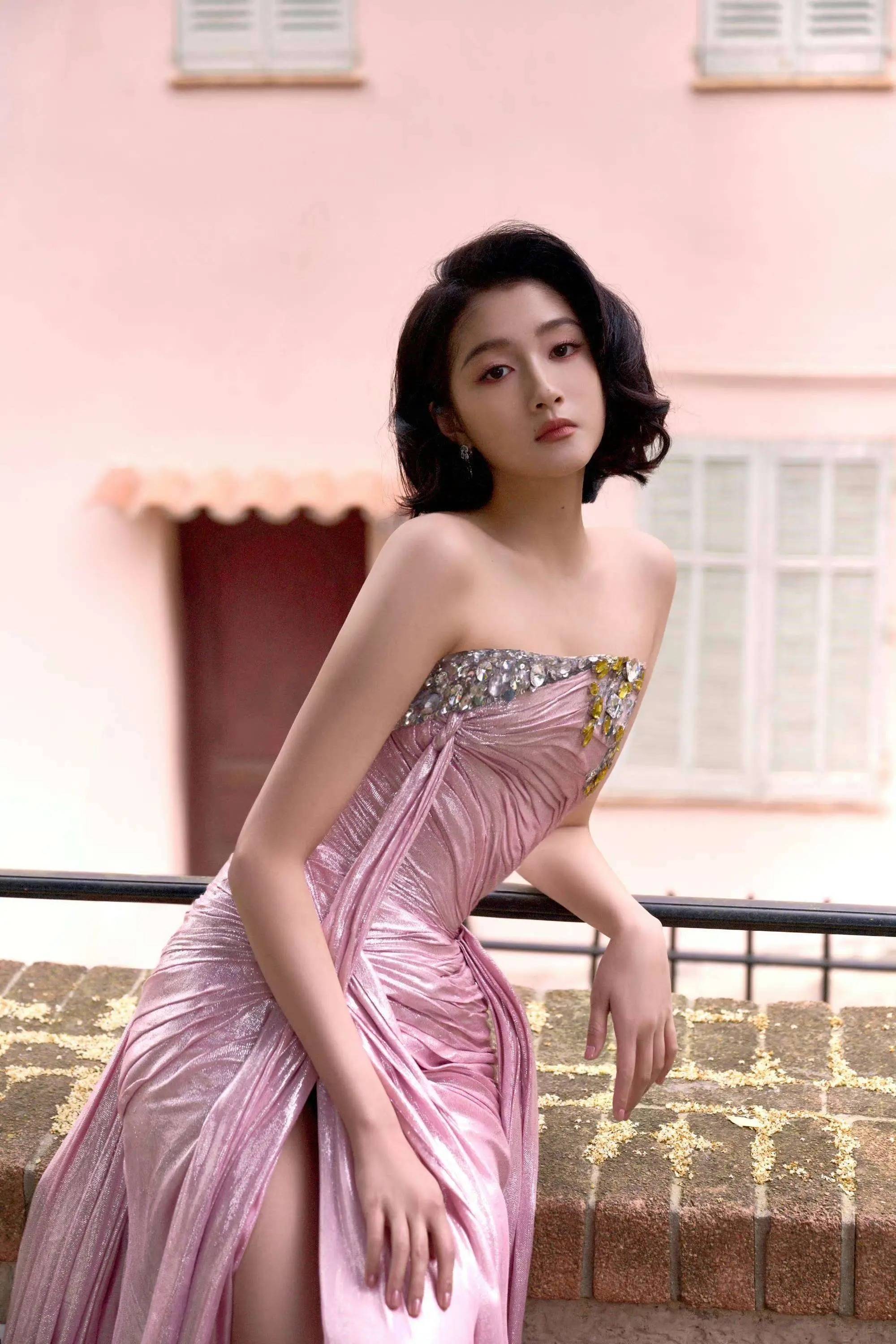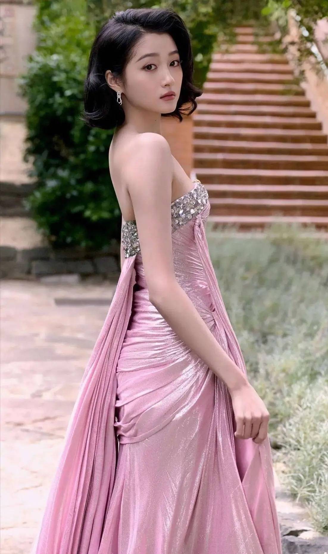 当关晓彤身着一袭粉色抹胸长裙,优雅地踏上ELLE红毯时,周边摄影师瞬间按下快门,闪光灯频闪。这条裙子以柔和雾粉色为主,抹胸处的施华洛世奇水晶在灯光下反射出点点光芒。高开叉设计随她步伐轻摆,隐约露出纤细小腿。此造型引发极大关注,在微博热搜榜停留超8小时,话题阅读量突破5亿。评论区里,众人纷纷称赞她逆袭且惊艳,这些赞美声完全盖过了以往对她造型的批评。