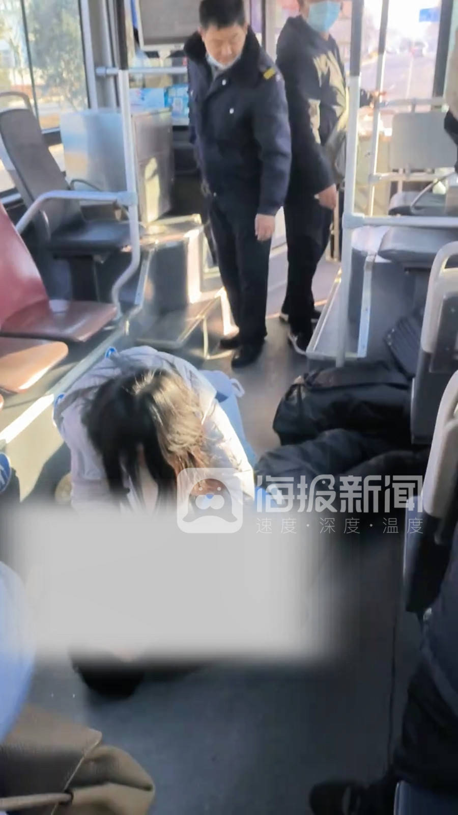 1月22日上午,一段“日照55路公交车上救人”的视频在网上传播。视频中,一位中年男子面色苍白、瘫倒在地上,一位披散头发、身穿银色羽绒服的女士正在为他施救。